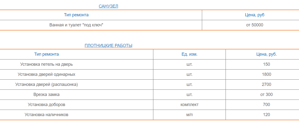 Демонтажные работы Грунтование стен и потолка Шпатлевка стен и потолка Выравнивание пола под ламинат Монтаж пластиковых панелей в ванной Установки сантехники Замена розеток Покраска потолка Поклейка обоев Укладка ламината Уборка помещений и сдача объекта